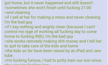 forgot to add; the wife also has got a full time job next to all of the responsibilities that come with a family/marriage.