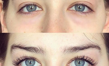the makeup on her eyes usually fill out the little visible skin on her eyelids instead of trying to draw a really thin eyeliner. while...